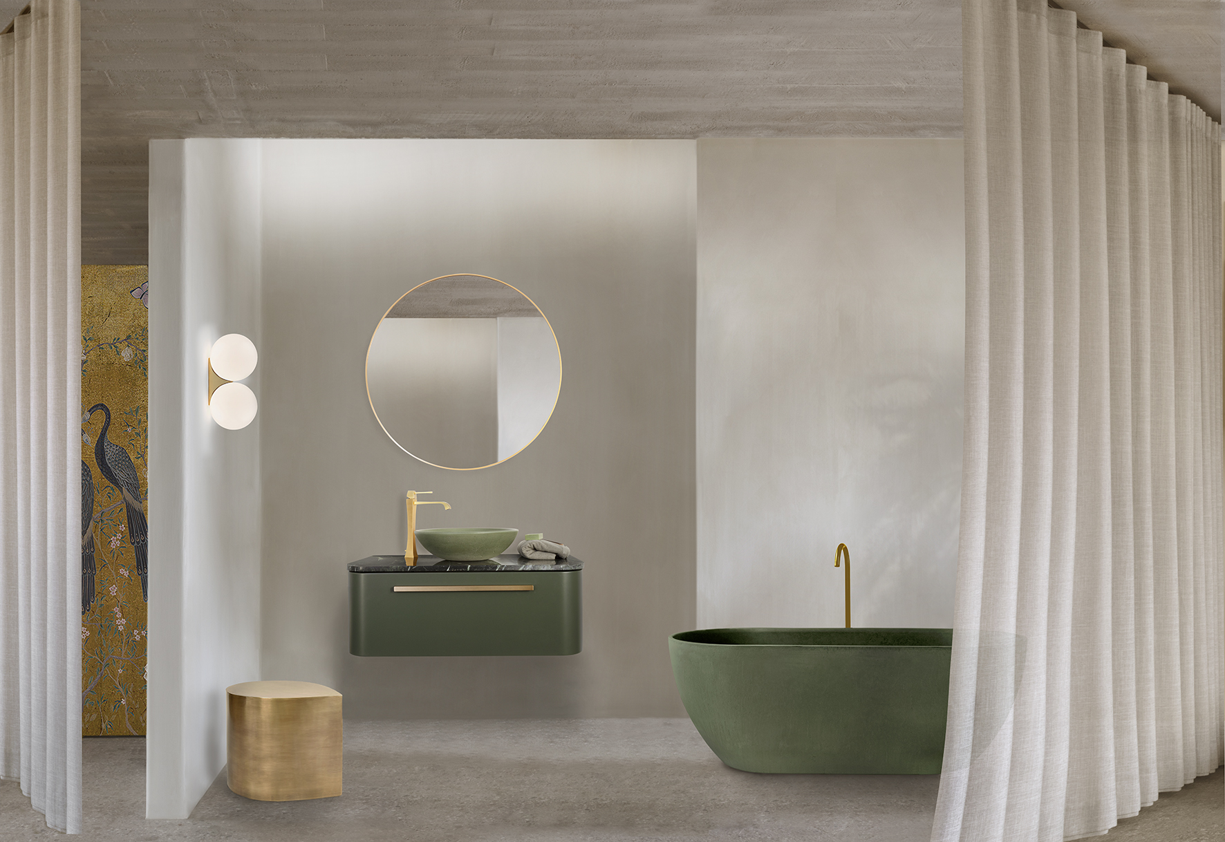 Omdat zowel het bad als het meubel uit dezelfde designfilosofie komen, sluiten ze perfect op elkaar aan. De kleuren versterken elkaar en zorgen voor een rustig, luxe geheel waarin het bad echt tot zijn recht komt als middelpunt.