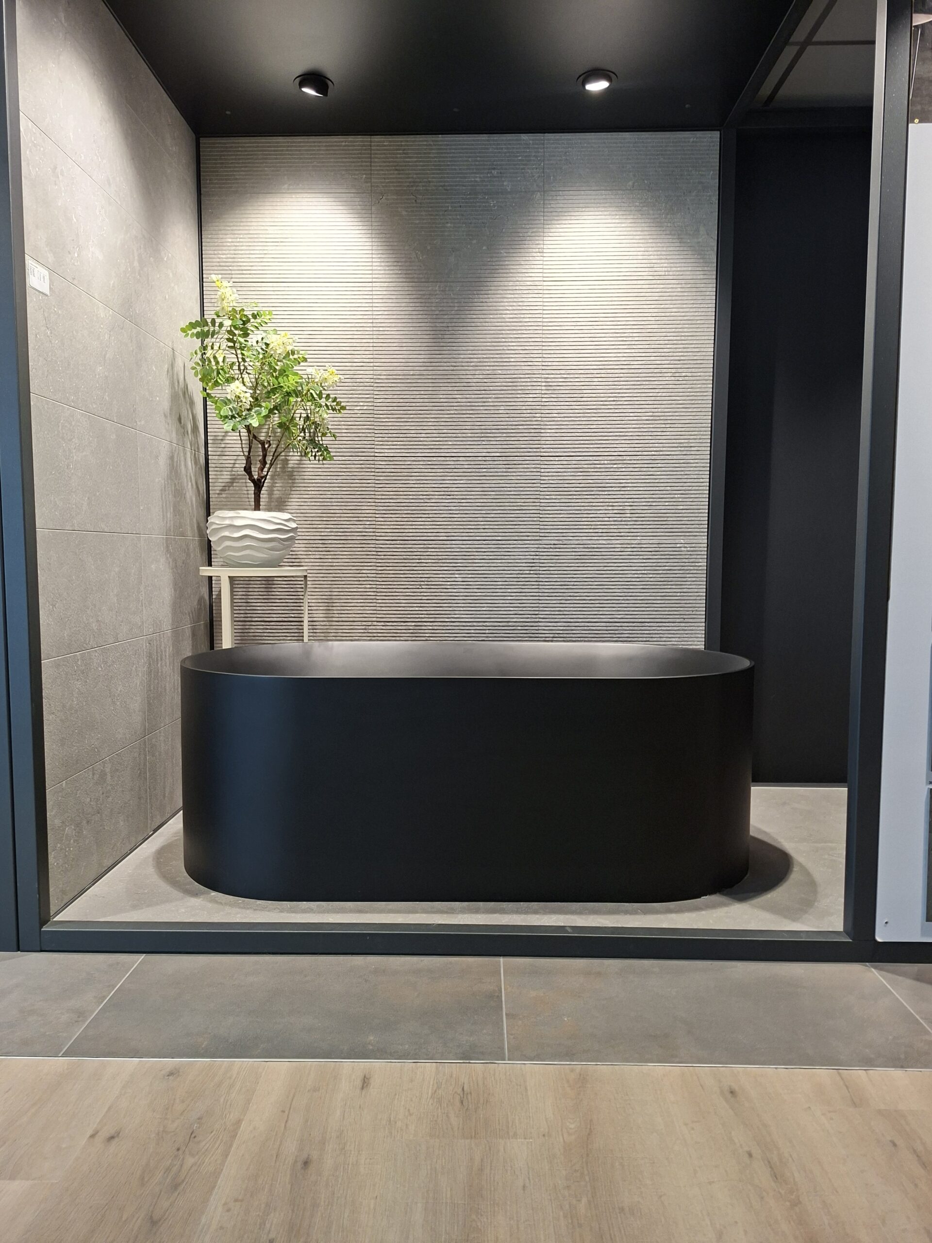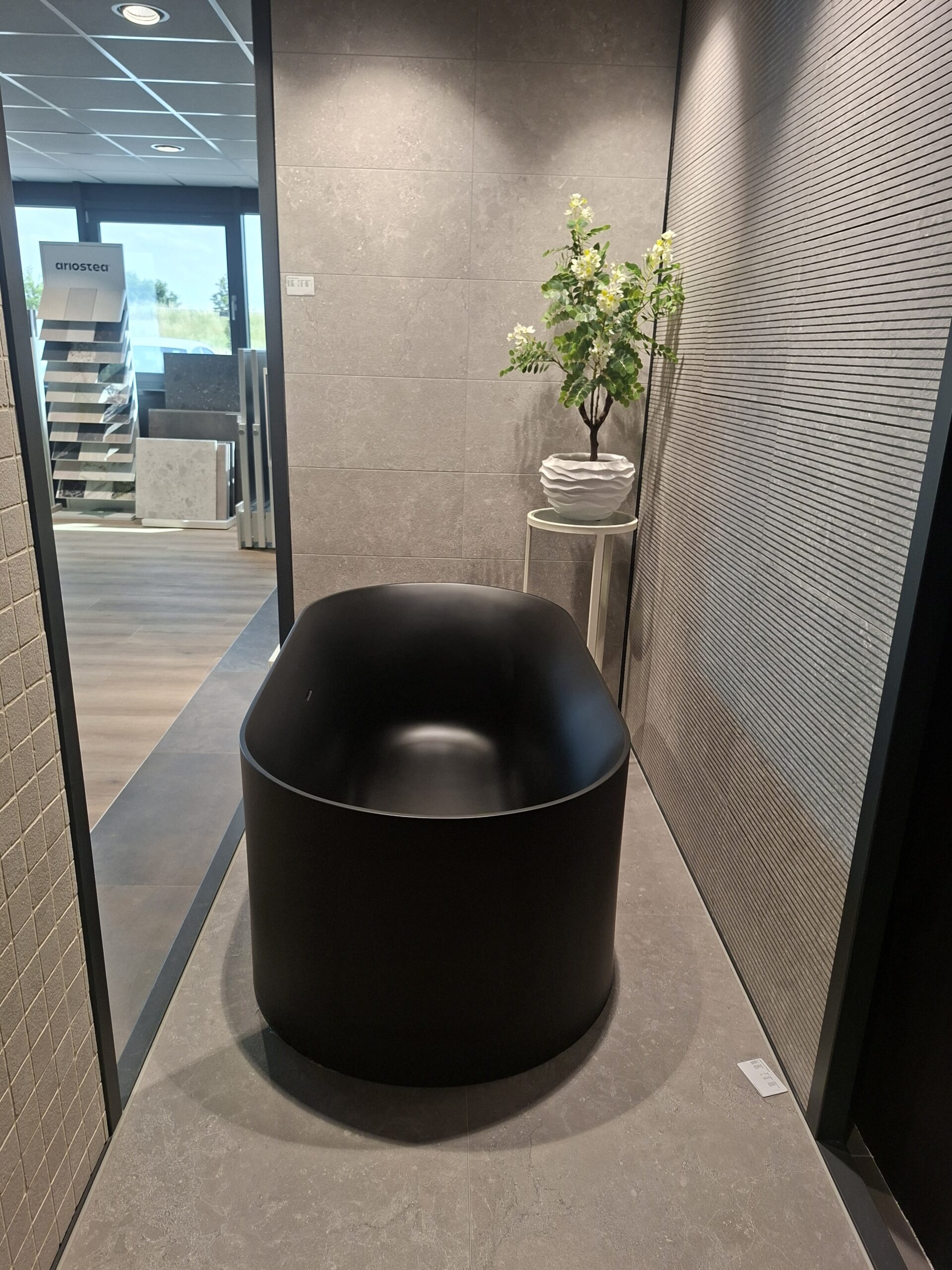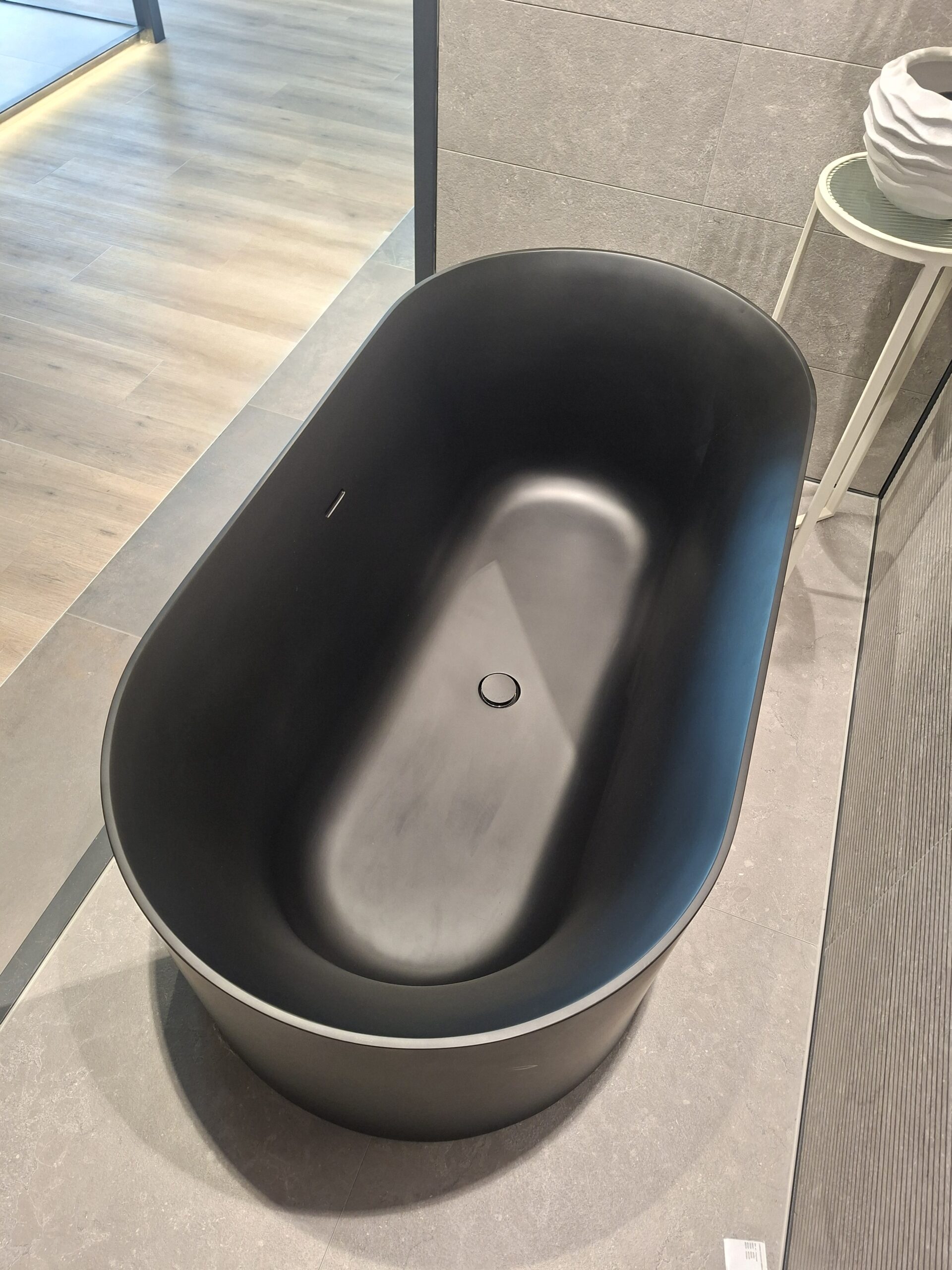 Breng verfijnde elegantie in je badkamer met het Detremmerie Sushimi vrijstaand ovaal bad. Dit Belgische designbad combineert tijdloze esthetiek met hoogwaardige afwerking in een opvallende matzwarte kleur. De zachte ovale vorm zorgt voor optimaal comfort en maakt dit bad tot een echte eyecatcher in elke ruimte.