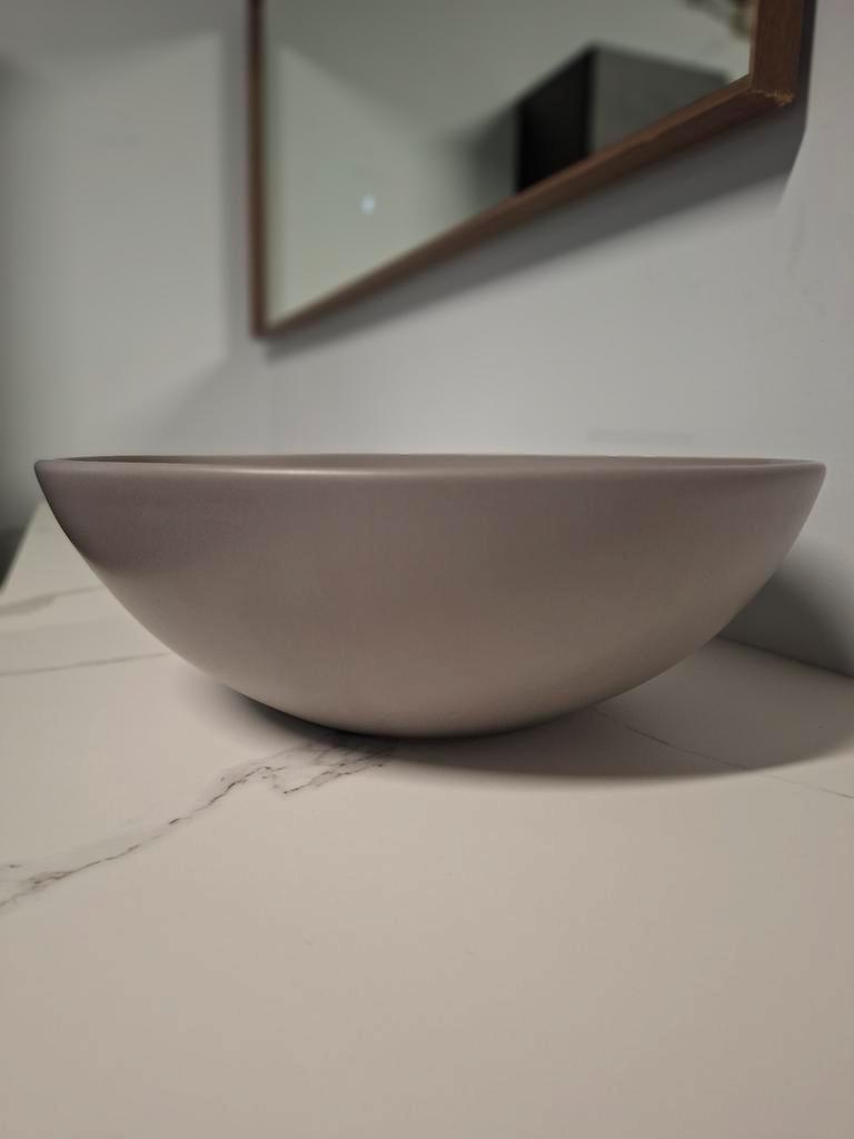 Deze stijlvolle Detremmerie waskom in mat Vision Grijs straalt warmte en elegantie uit. Dankzij de tijdloze kleur is de waskom eindeloos te combineren met verschillende badkamerstijlen. Dit betreft een showroommodel.