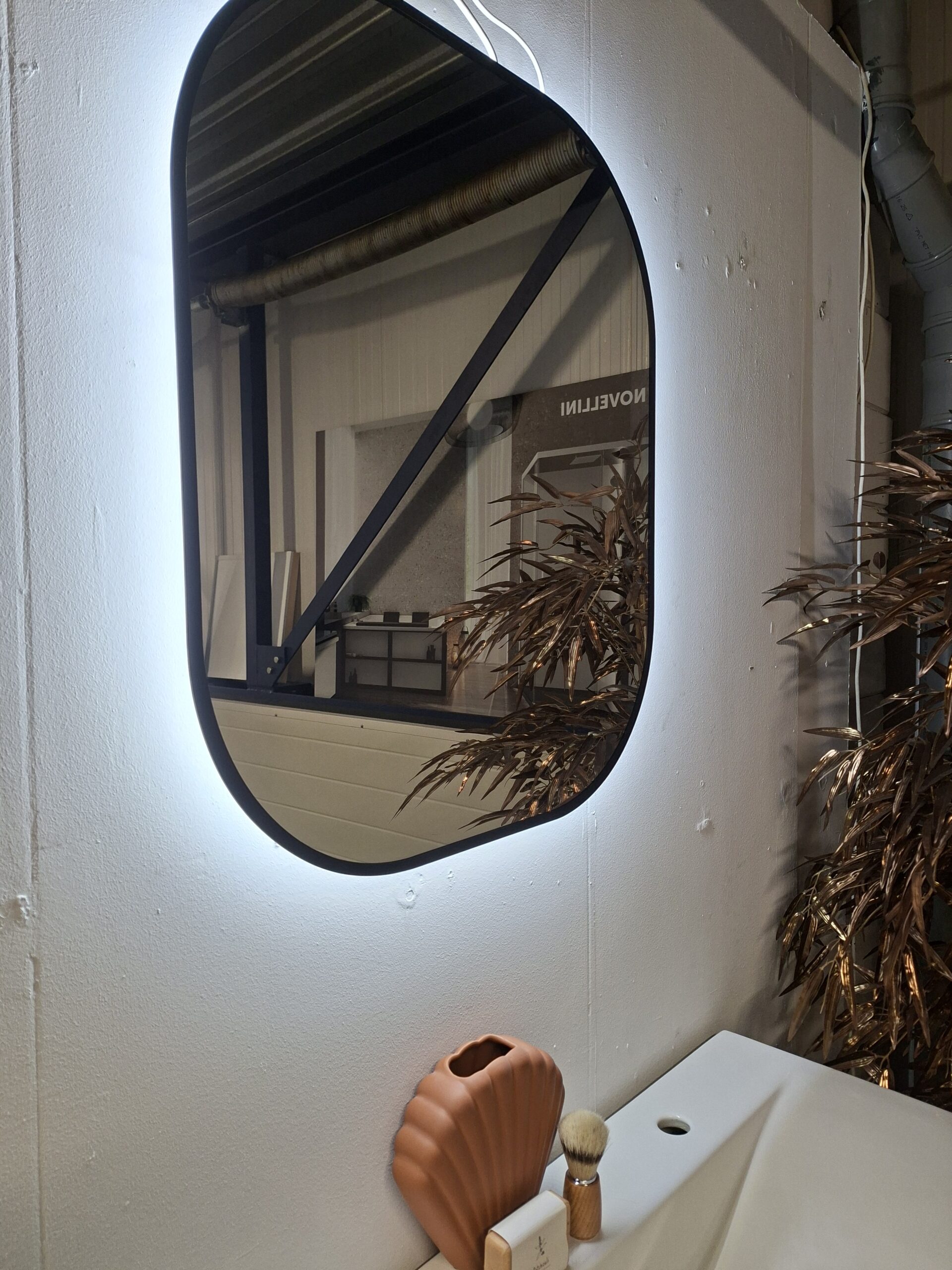 - Organische spiegel zwarte rand en LED verlichting 70 x 60 cm