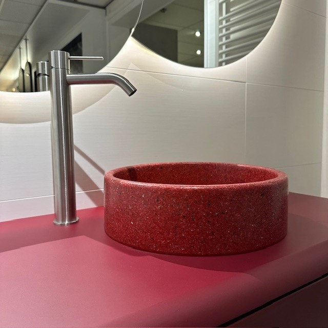 - Duurzame opbouw waskom vervaardigd uit gerecyclede autoruiten mat rood 36 cm.