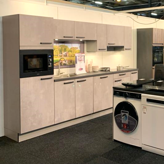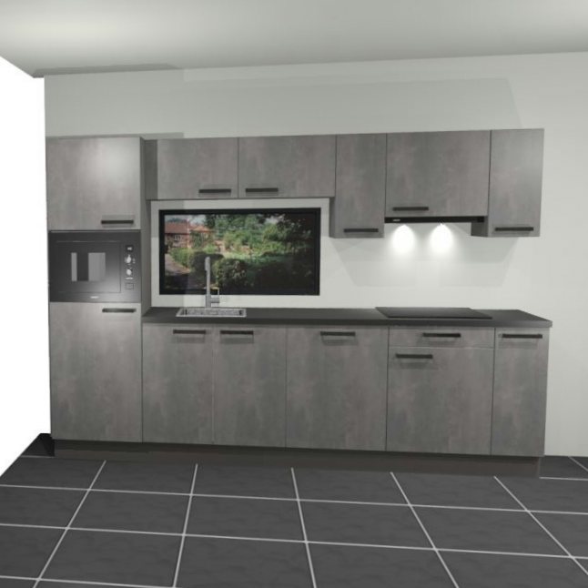 Exclusieve Aanbieding: Moderne Rechte Keuken van 300 cm in Betongrijs Spateloptiek