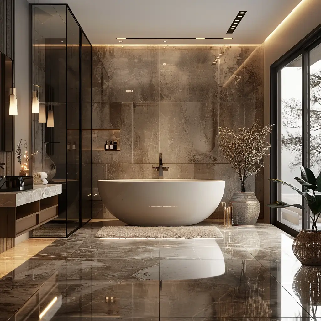 Wil je zelf een luxe badkamer creëren? Begin met het selecteren van hoogwaardige materialen zoals marmer, natuursteen en glas voor een elegante uitstraling. Kies rustige, stijlvolle kleuren zoals wit, zwart, beige of zachte grijstinten, en voeg subtiele accenten van goud of brons toe voor extra luxe. Zorg voor comfortabele voorzieningen zoals een vrijstaand bad, ruime inloopdouche en dubbele wastafels. Goede verlichting is essentieel, dus gebruik dimbare verlichting om sfeer en comfort te creëren. Voeg slimme technologie toe zoals vloerverwarming, een verwarmde spiegel of een ingebouwd geluidssysteem. Houd de ruimte overzichtelijk en minimalistisch ingericht met geïntegreerde opbergsystemen om de badkamer altijd rustig en netjes te houden. Tot slot zorgen exclusieve accessoires zoals zachte handdoeken, luxe badmatten en stijlvolle zeepdispensers voor de finishing touch. Zo realiseer je eenvoudig een prachtige luxe badkamer waarin je dagelijks kunt genieten van ultiem comfort en ontspanning.