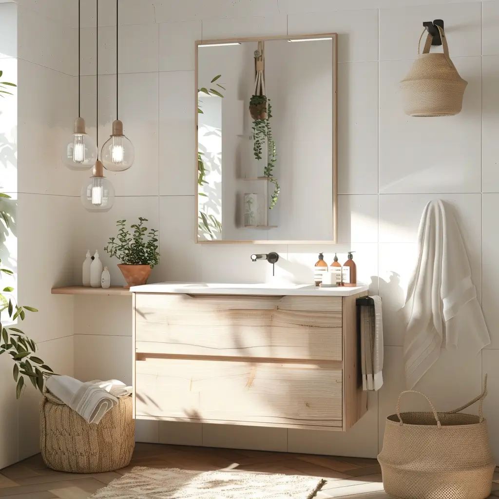 Wil je zelf thuis een Scandinavische badkamer creëren? Kies dan als basis voor lichte kleuren zoals wit, crème of zachtgrijs. Combineer dit met natuurlijke materialen zoals licht hout, natuursteen en keramiek. Zorg ervoor dat er veel natuurlijk licht binnenvalt en maak gebruik van spiegels om het ruimtelijke effect te versterken. Selecteer meubels en accessoires die minimalistisch en praktisch zijn, zoals eenvoudige wandplanken of stijlvolle opbergmanden. Voeg daarnaast enkele groene planten toe om extra sfeer en kleur te creëren. Verlichting speelt ook een grote rol. Kies voor subtiele, warme verlichting zoals wandlampen, spots of hanglampen met een zacht licht voor een gezellige sfeer. Tot slot, vermijd teveel decoraties en houd de badkamer overzichtelijk en rustig. Door op deze manier te werken creëer je eenvoudig een Scandinavische badkamer waarin je iedere dag kunt genieten van rust, ruimte en comfort.