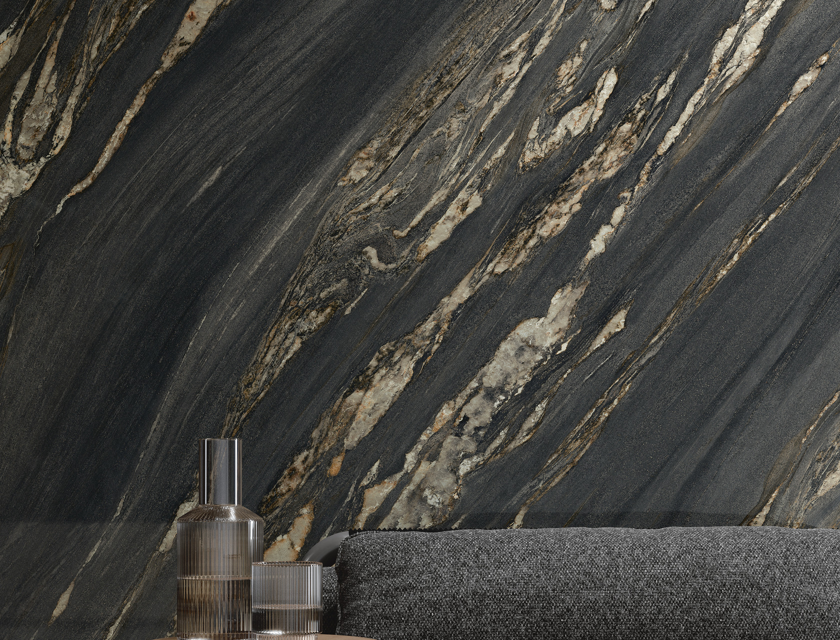 Dankzij de grootformaat keramische platen ontstaat een bijna naadloos oppervlak dat perfect past in luxe badkamers, keukens en woonkamers.