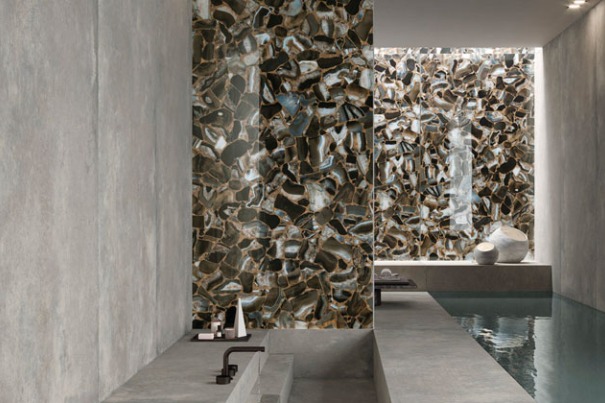 De Ultra Onici collectie is geïnspireerd op de transparante en luxueuze structuur van onyxsteen. Deze tegels hebben een diepe kleurstructuur en worden vaak gebruikt in high-end interieurdesign.