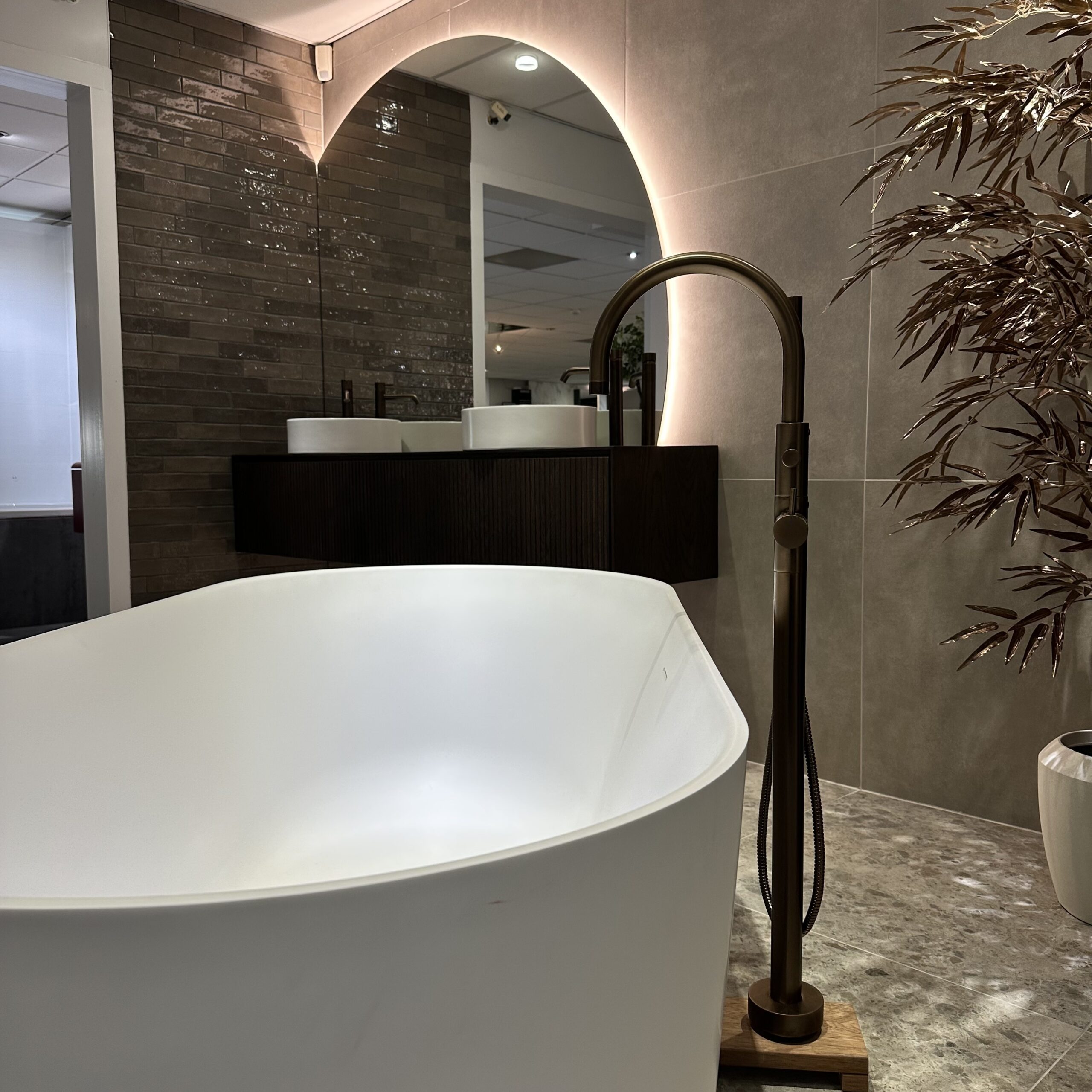 Voor ultieme ontspanning staat het vrijstaande bad Sanne, gecombineerd met een vrijstaande Xenz badkraan in bijpassende oud koper optiek. Even wegdromen in stijl was nog nooit zo makkelijk!