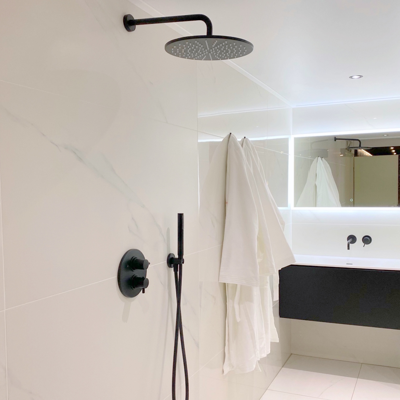 - Duero mat zwarte thermostatische regendoucheset met 30 cm regendouche