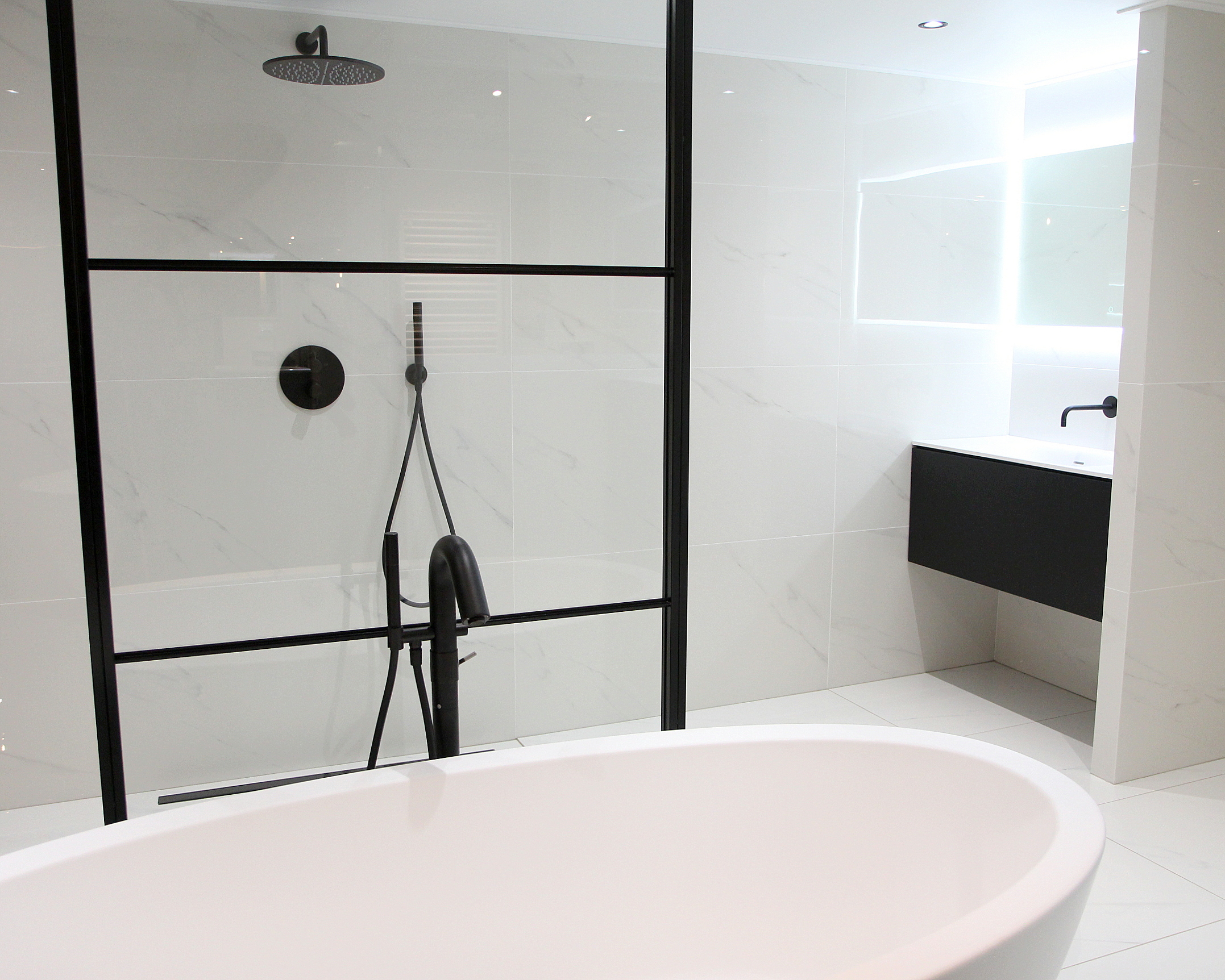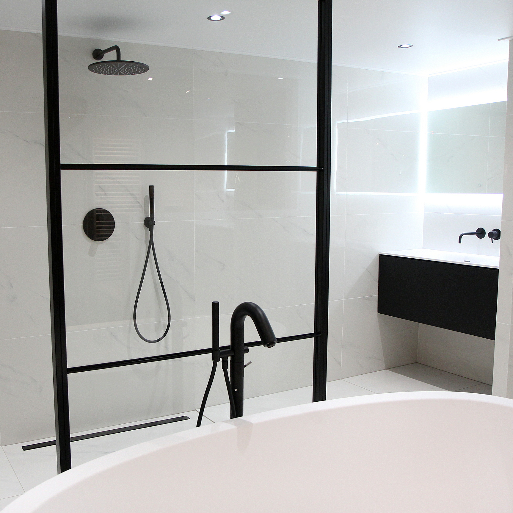 Creëer een tijdloze, luxueuze badkamerervaring met de perfecte harmonie van Carara Bianco en hoogwaardige voorzieningen. Van het vrijstaande bad tot aan de inbouw wastafelmengkraan, elk element is met zorg gekozen om een verfijnde en sfeervolle ruimte te creëren. Ontdek de tijdloze klasse en breng jouw badkamer naar het hoogste niveau van elegantie en comfort.