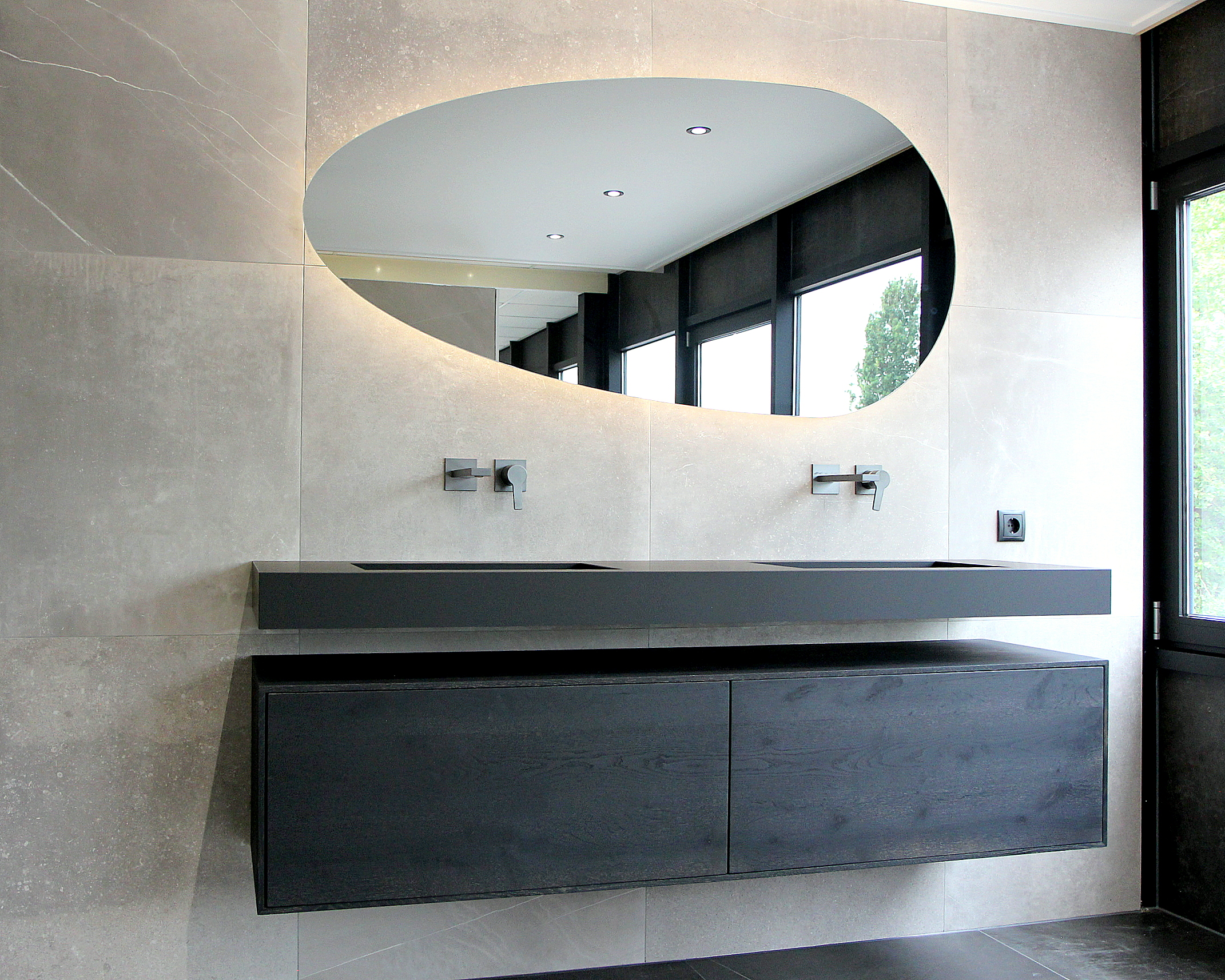 - Maatwerk wastafelblad met 2 wasbakken in Bold Black
