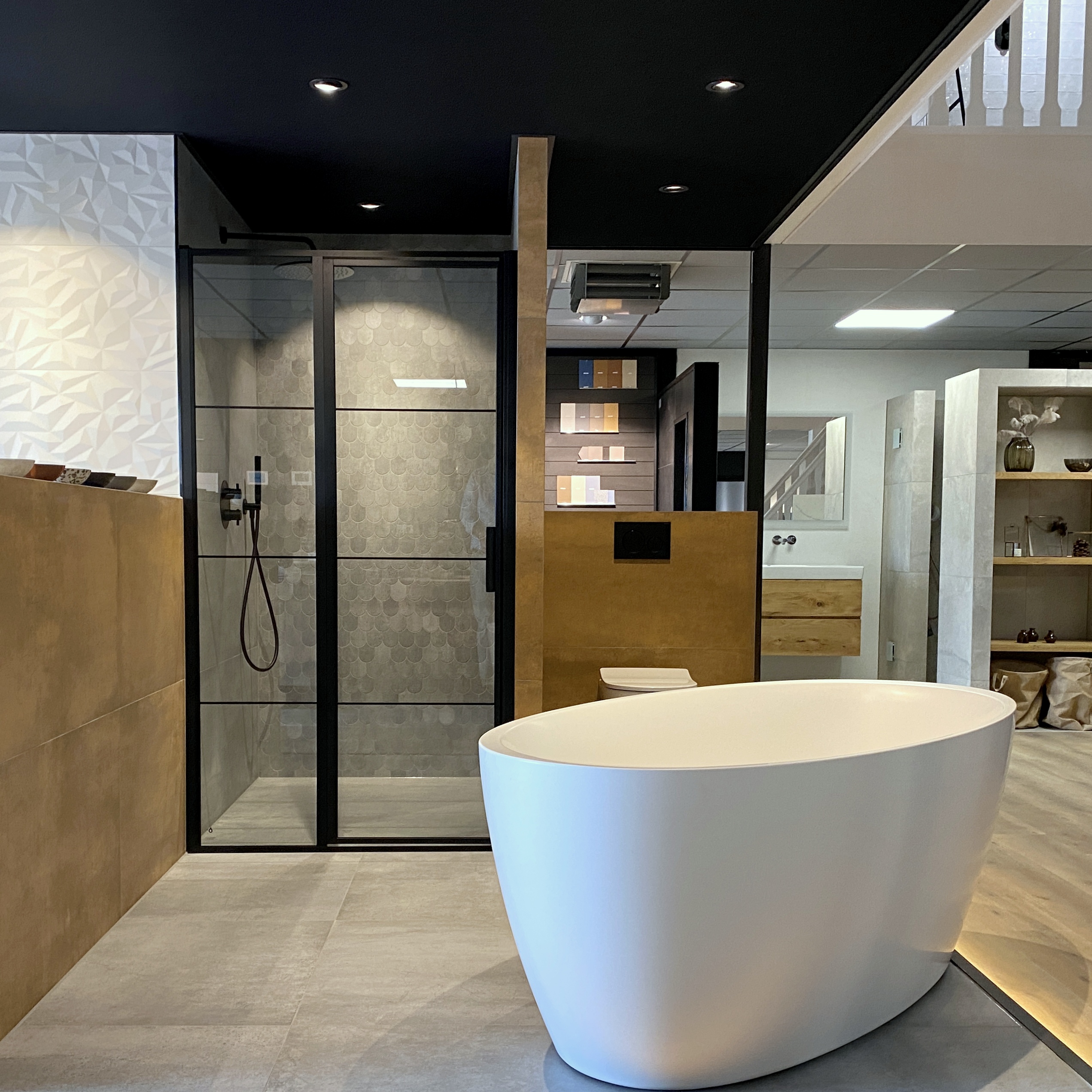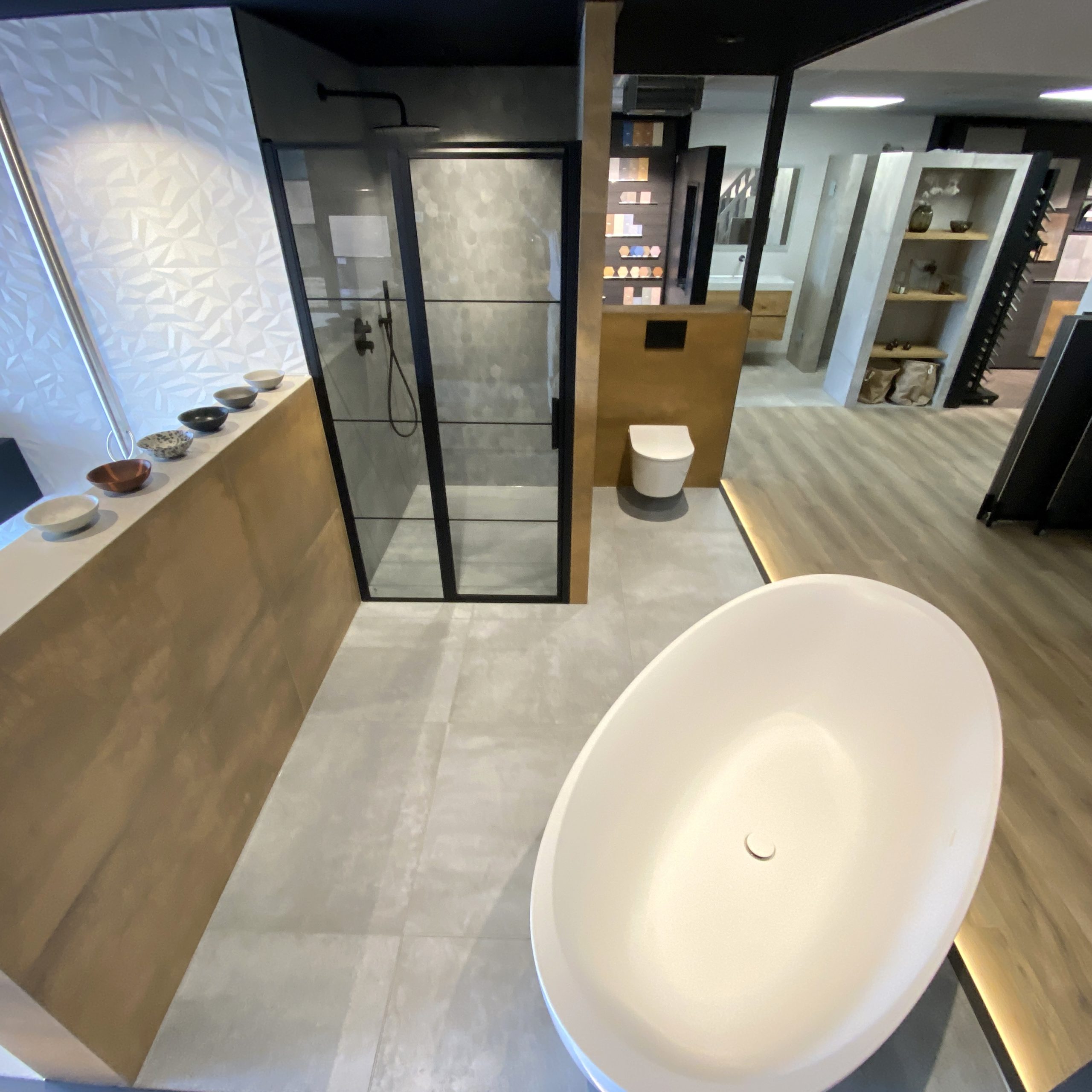 Welkom in de vernieuwde badkamerafdeling op de begane grond, waar functionaliteit en stijl samenkomen in onze prachtige Soho badkameropstelling. Ontdek de verfijnde elegantie van onze Copper en Steel tegels, die de ruimte omhullen in luxe en trendsettende allure. Als kers op de taart voegen de schitterende Plume decortegels een extra dimensie toe aan de al indrukwekkende ambiance.