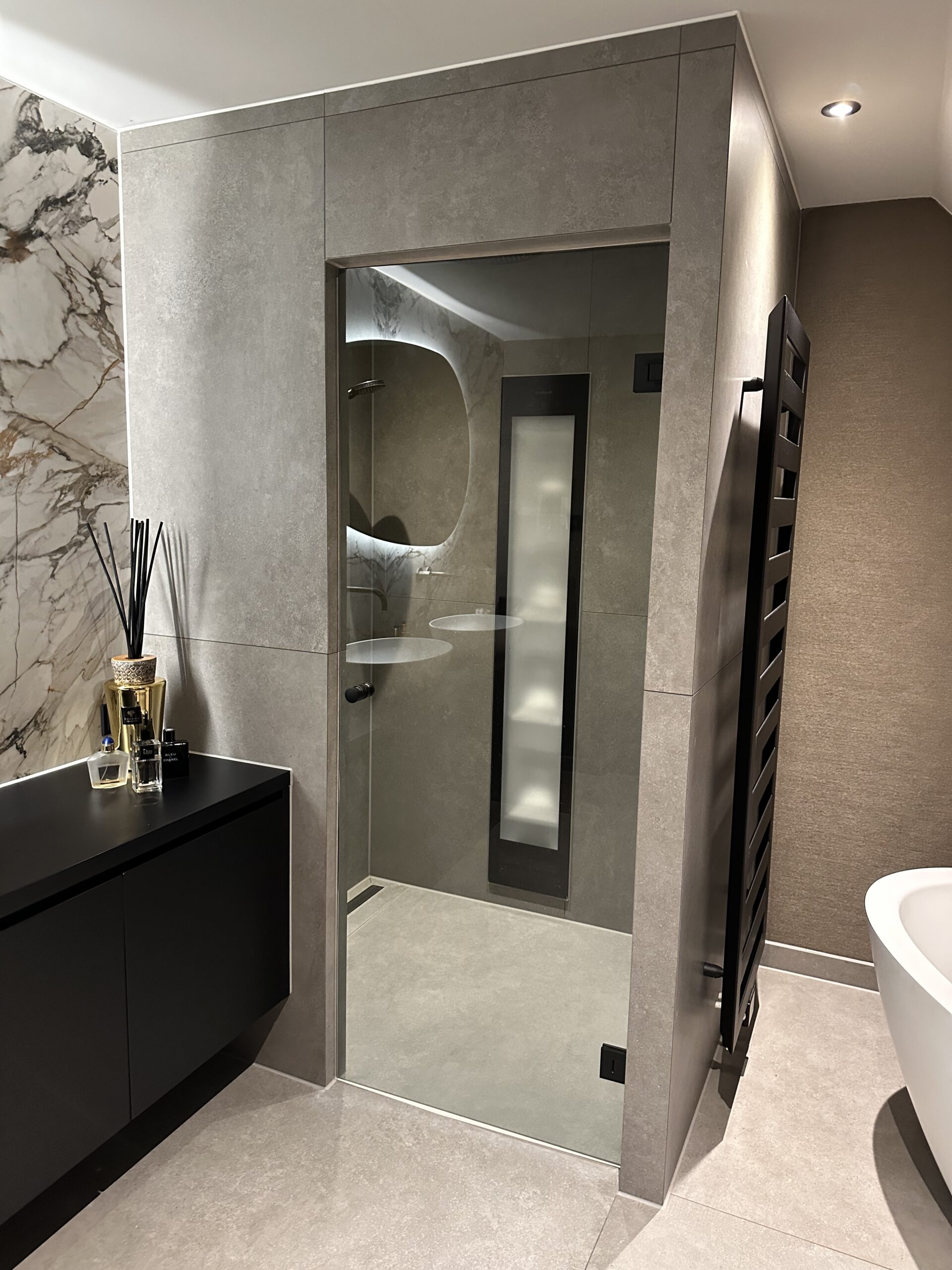 Bij Bubbels & Jets begrijpen we dat elke badkamer uniek is. Daarom bieden wij maatwerkoplossingen voor inbouw stoomcabines, waarbij je kunt kiezen uit verschillende materialen en afmetingen die passen bij jouw stijl en ruimte. Onze inbouw stoomcabines kunnen naadloos geïntegreerd worden in jouw omgeving, waardoor ze een verfijnde en luxe uitstraling krijgen.