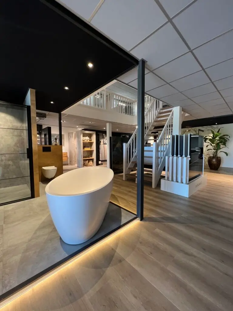 Deze Experience room is afsluitbaar, dus je kunt ongestoord alles beproeven, uitproberen en beleven. Zo kun je weloverwogen de juiste keuzes maken. Ook kun je er het mooie strakke spanplafond zien.