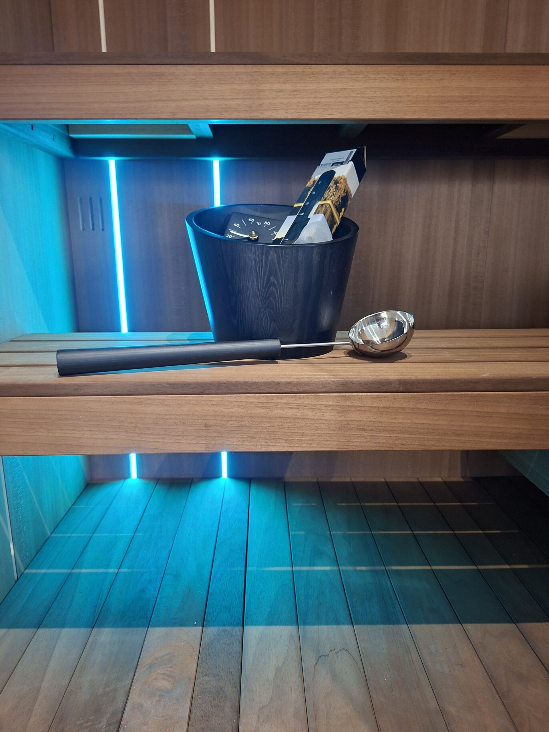 De diepe zwarte kleur zorgt voor een luxe en minimalistische look en past perfect in zowel moderne als klassieke sauna’s.